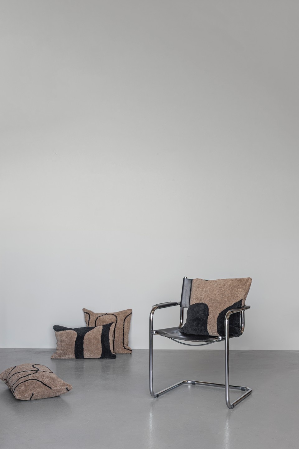 De SHADOW kussenhoes van Mette Ditmer in bruin is ideaal voor wie houdt van natuurlijke tinten en rijke structuren. De zwarte lijntekening in organische vormen zorgt voor een stijlvol contrast met de warme bruine basis. De getufte textuur voegt niet alleen diepte toe, maar maakt het kussen ook heerlijk zacht en uitnodigend.