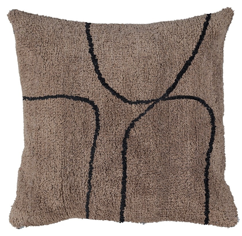 De SHADOW kussenhoes van Mette Ditmer brengt rust en verfijning in huis. Gemaakt van een zachte, getufte katoenkwaliteit, straalt de hoes een natuurlijke elegantie uit. Het zwarte lijnenspel in organische vormen staat prachtig op de warme bruine achtergrond, wat zorgt voor een grafisch maar ingetogen effect.