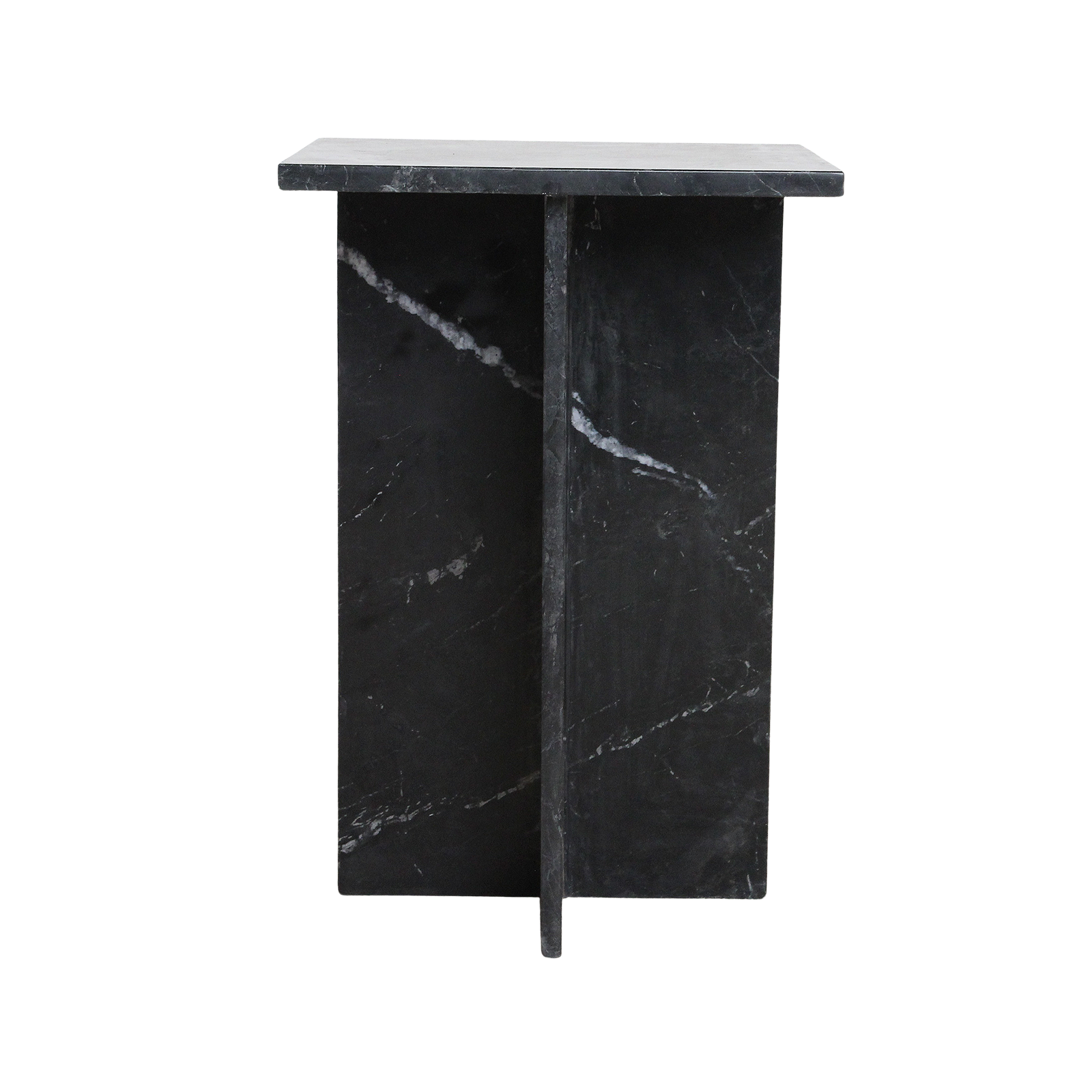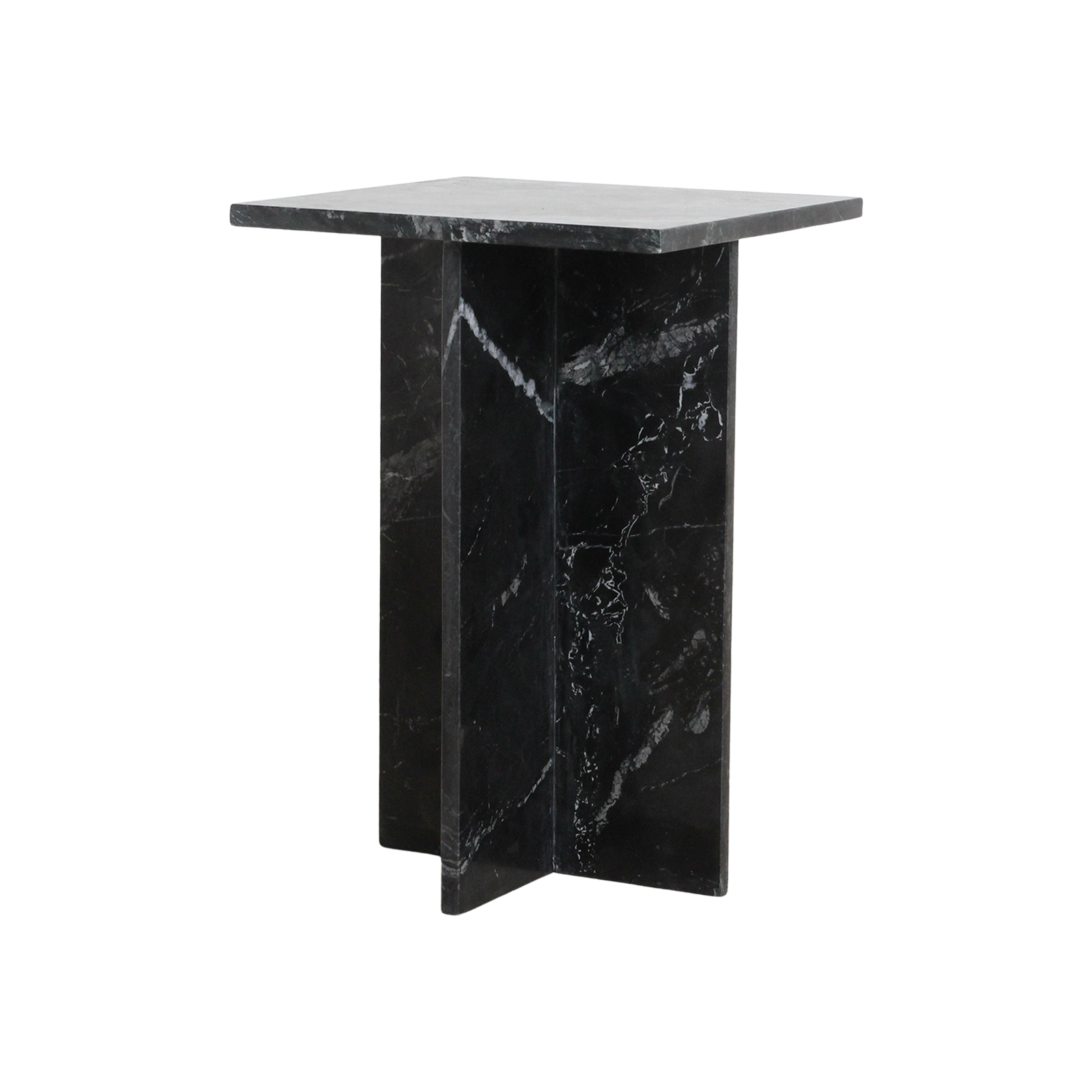 De Shanghai bijzettafel is stoer, stijlvol en verfijnd tegelijk. Het vierkante marmeren blad en het kruisvormige onderstel, beide uitgevoerd in diep zwart marmer, geven deze tafel een moderne en karaktervolle uitstraling. Het natuurlijke patroon in het marmer maakt elke tafel uniek.