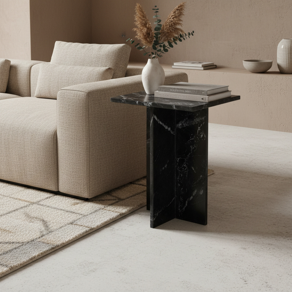 Shanghai bijzettafel – vierkante bijzettafel van zwart marmer