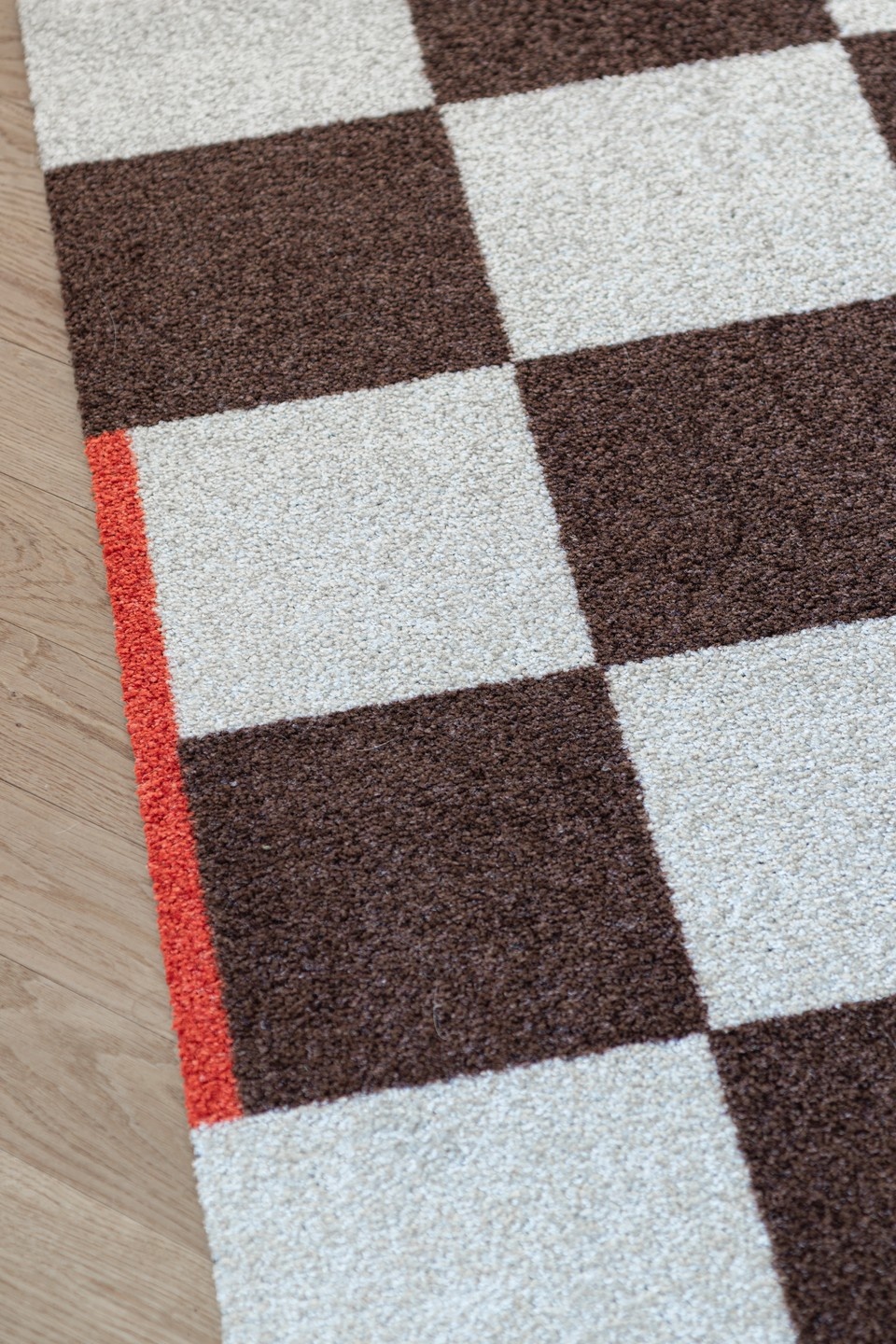 De SQUARE all-round mat van Mette Ditmer voegt een gedurfd grafisch statement toe aan je interieur. De combinatie van olijfgroen en zandkleurige ruiten geeft een rustige, aardse basis, terwijl de helderblauwe accenten zorgen voor een onverwachte, frisse twist. Een perfecte weerspiegeling van de kenmerkende Deense mix van eenvoud en spanning.