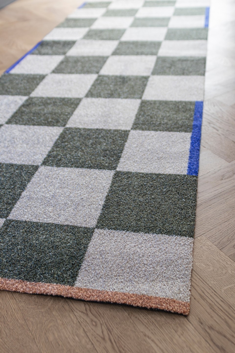 De SQUARE all-round loper van Mette Ditmer is ontworpen om lange ruimtes – zoals gangen, keukens of overgangen tussen kamers – visueel te verbinden. Het grafische patroon in olijfgroen en zand krijgt een frisse twist door accenten in levendig blauw. Een harmonieus spel van rust en contrast, typisch Scandinavisch van karakter.