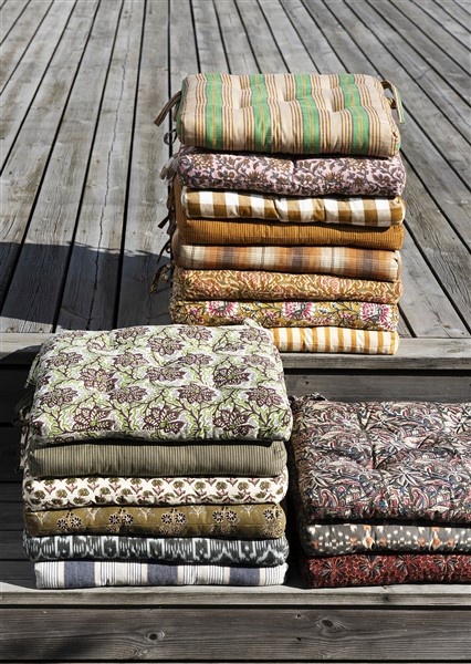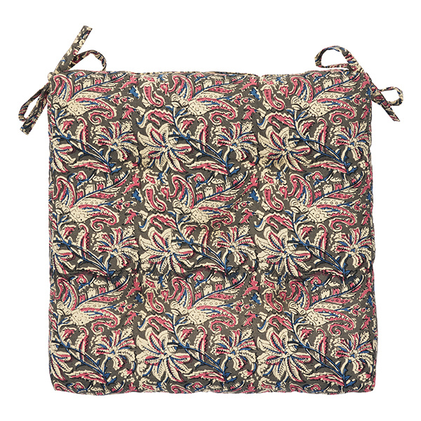 Het kussen past op de meeste stoelen en is ideaal voor de eettafel, werkplek of serre. De kleuren geven een rustige basis met een speels accent, perfect te combineren met hout of zachte stoffen.