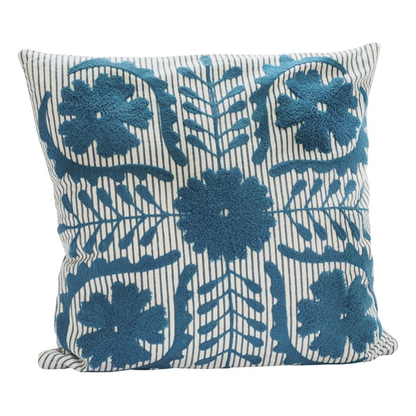 Suzani geborduurde kussenhoes van Madam Stoltz in blauw en gebroken wit