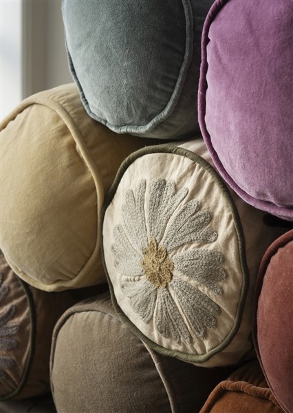 Suzani kussenrol met borduursel in rustige natuurtinten