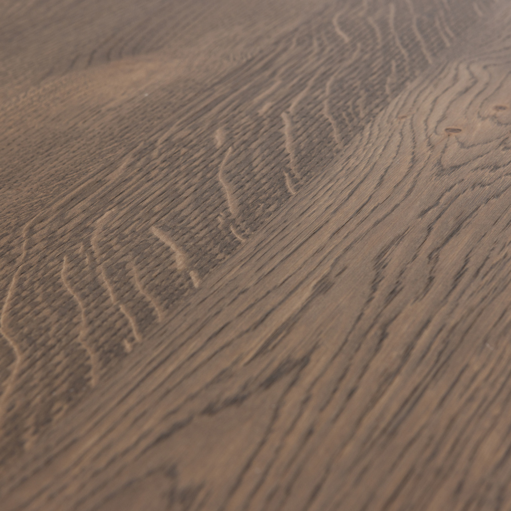 Het tafelblad is vervaardigd uit FSC mix-gecertificeerd eikenhout en afgewerkt in de prachtige kleur Cashmere Brown. Deze warme, bruine tint geeft de tafel een moderne, maar toch tijdloze uitstraling, terwijl de subtiele nerftekeningen zorgen voor een levendig en uniek karakter. Het blad is behandeld met een natuurlijke beits die de schoonheid van het eikenhout optimaal benadrukt.