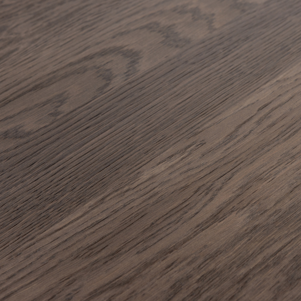 Het blad bestaat uit stroken verlijmd eikenhout met een doorgaande lamelverbinding, wat zorgt voor een strak en rustig lijnenspel. Het FSC-mix gecertificeerde eikenhout is licht geschuurd, waardoor de nerftekening extra tot zijn recht komt.