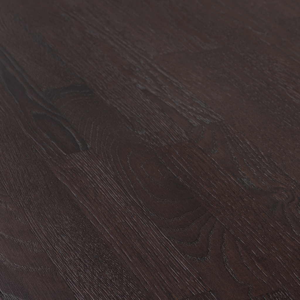 De tafel is vervaardigd uit stroken verlijmd eikenhout met een vingerlasverbinding, waardoor een subtiel speels patroon ontstaat. Het eikenhout is FSC-mix gecertificeerd en licht geborsteld, waardoor de natuurlijke nerfstructuur prachtig zichtbaar blijft.