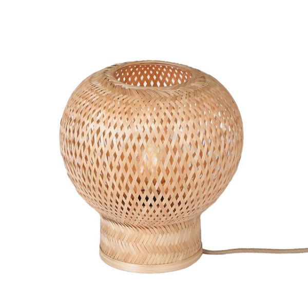Een mooie tafellamp gemaakt van bamboe in de kleur naturel
