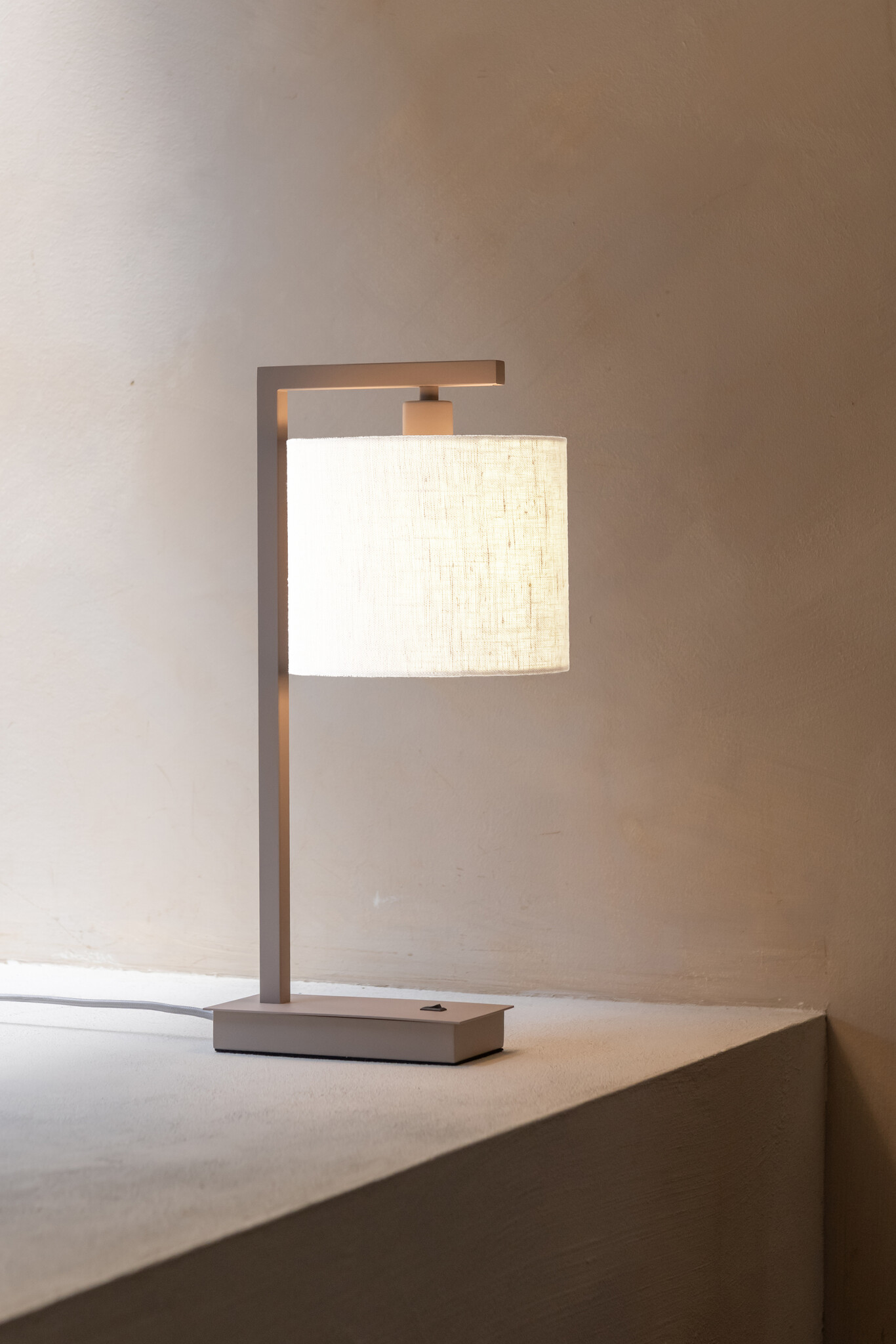 De lamp beschikt over een E14-fitting en ondersteunt lichtbronnen tot 40 watt. De zandkleurige stoffen kabel en de schakelaar op de voet maken het gebruik eenvoudig en praktisch. Dankzij de compacte afmetingen past deze tafellamp gemakkelijk op een bureau, nachtkastje of bijzettafel.