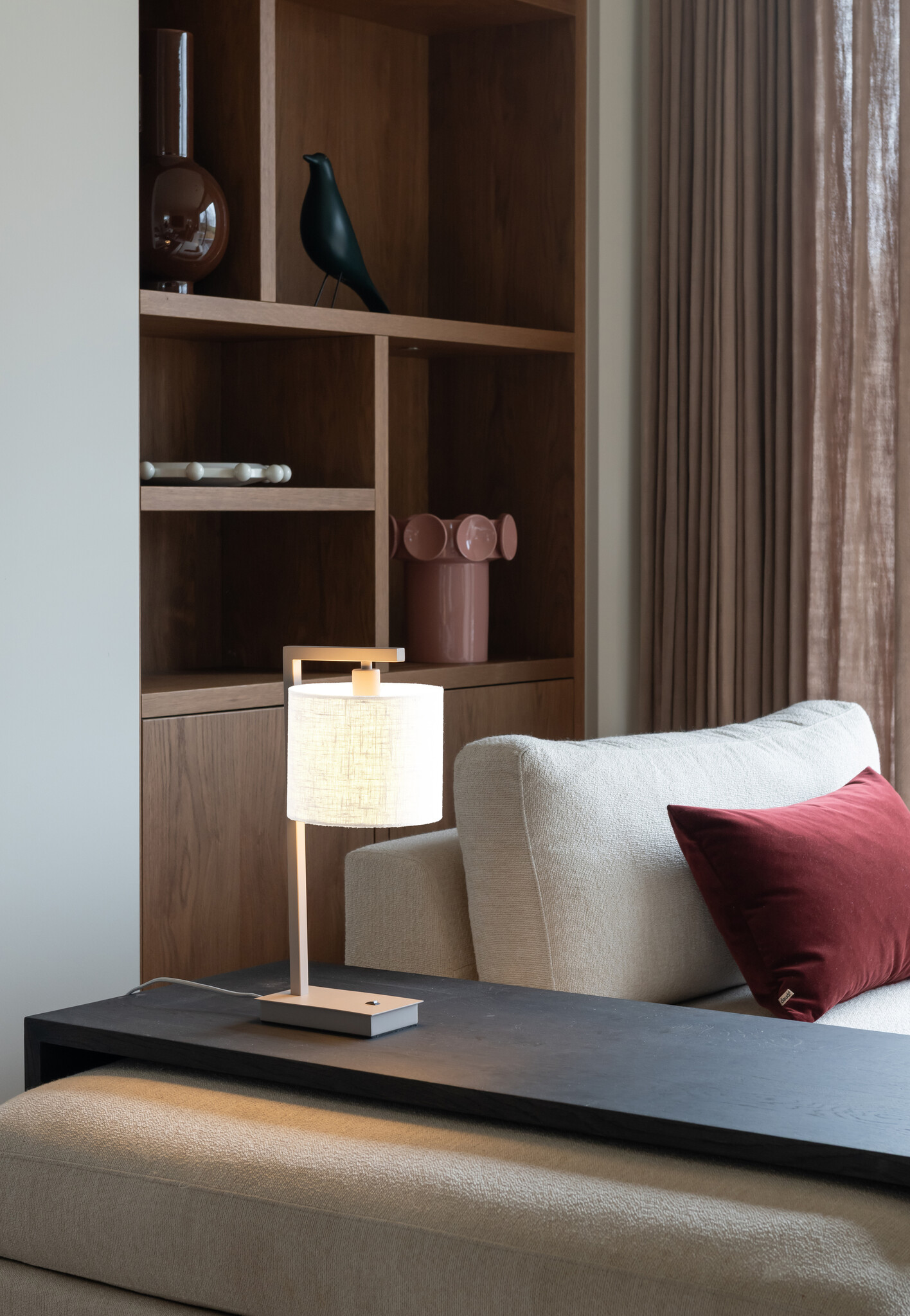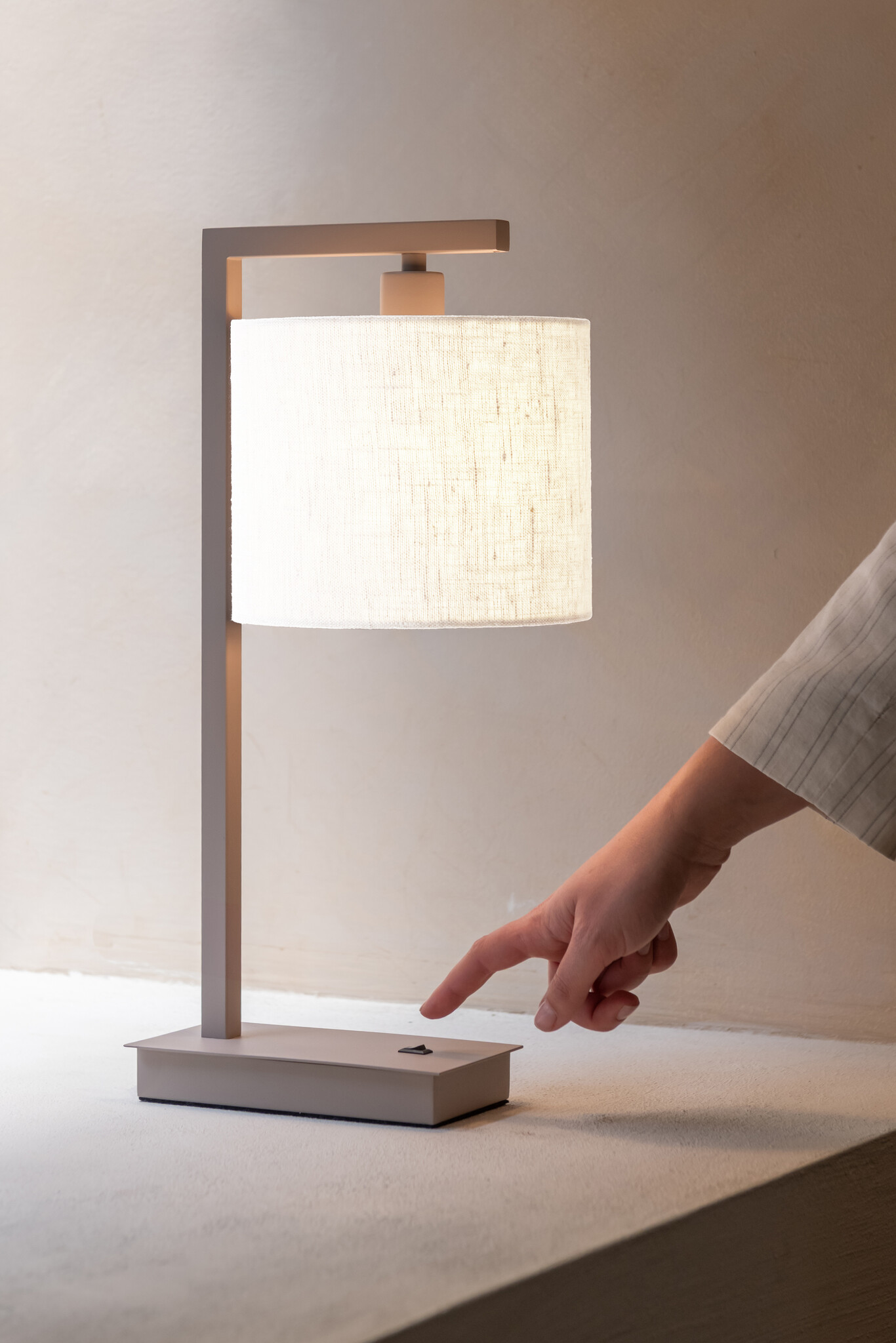 De It’s about RoMi Tafellamp Boston met zandkleurige basis en witte katoenen kap is een elegante lamp die zich perfect leent voor het verlichten van kleinere ruimtes of als stijlvolle toevoeging naast je favoriete stoel of bed. De combinatie van ijzer en katoen geeft een frisse en tijdloze uitstraling die eenvoudig te combineren is in uiteenlopende interieurstijlen.