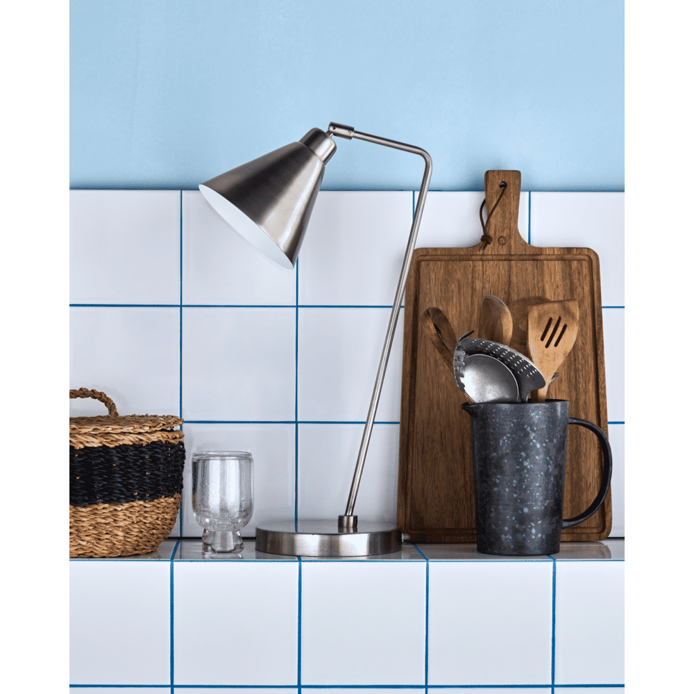 Met zijn slanke, geborstelde zilveren design brengt de Game tafellamp van House Doctor subtiele luxe naar je werk- of leesplek. Het handgemaakte ontwerp straalt eenvoud en elegantie uit, terwijl de verstelbare kap zorgt voor gericht licht – functioneel én sfeervol.