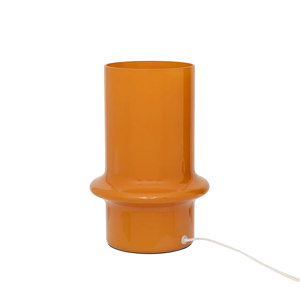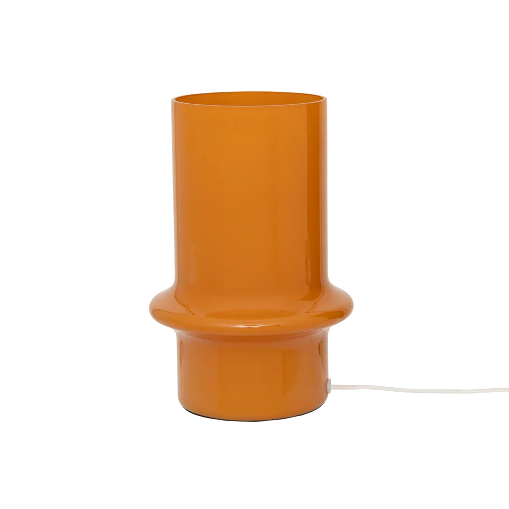 Deze tafellamp van gerecycled glas in de ondoorzichtige kleur golden orange straalt warmte en vrolijke energie uit. De rijke kleur en het uitnodigende licht geven elke ruimte een zonnige, opbeurende sfeer. Een duurzaam design dat karakter en warme gloed toevoegt aan je woondecoratie.