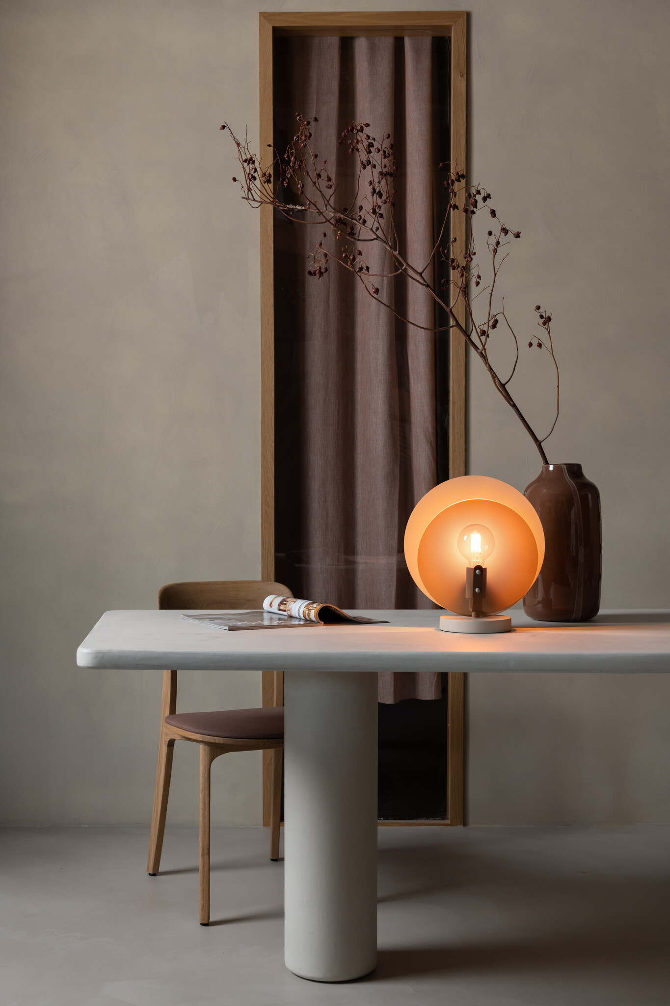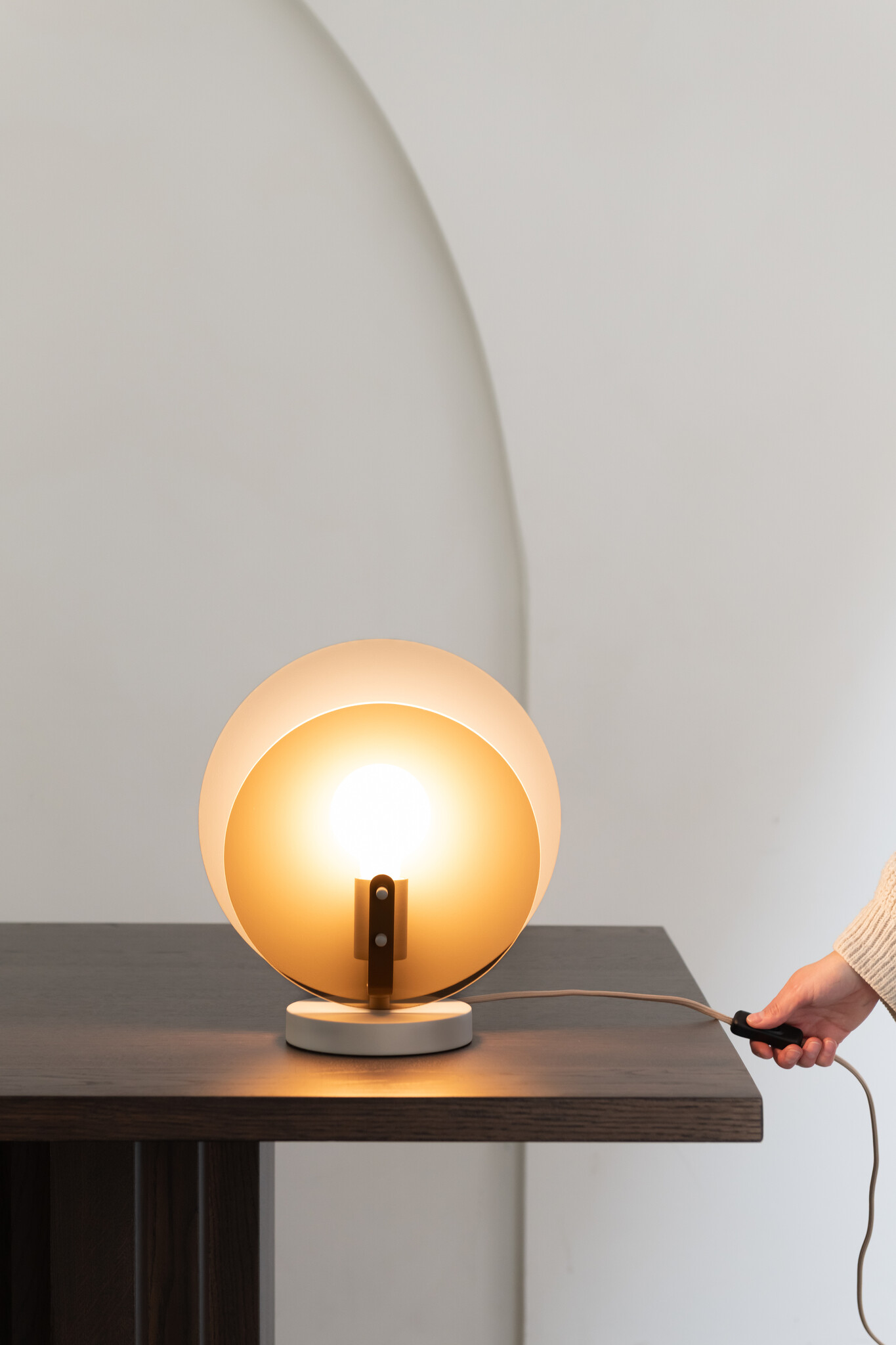 Met een E27 fitting (max. 60W) bepaal je zelf welke lichtbron je gebruikt. De lamp is geschikt voor dimbare lichtbronnen in combinatie met een externe dimmer. Dankzij de zandkleurige stoffen kabel (200 cm) past deze lamp moeiteloos in uiteenlopende interieurs.
