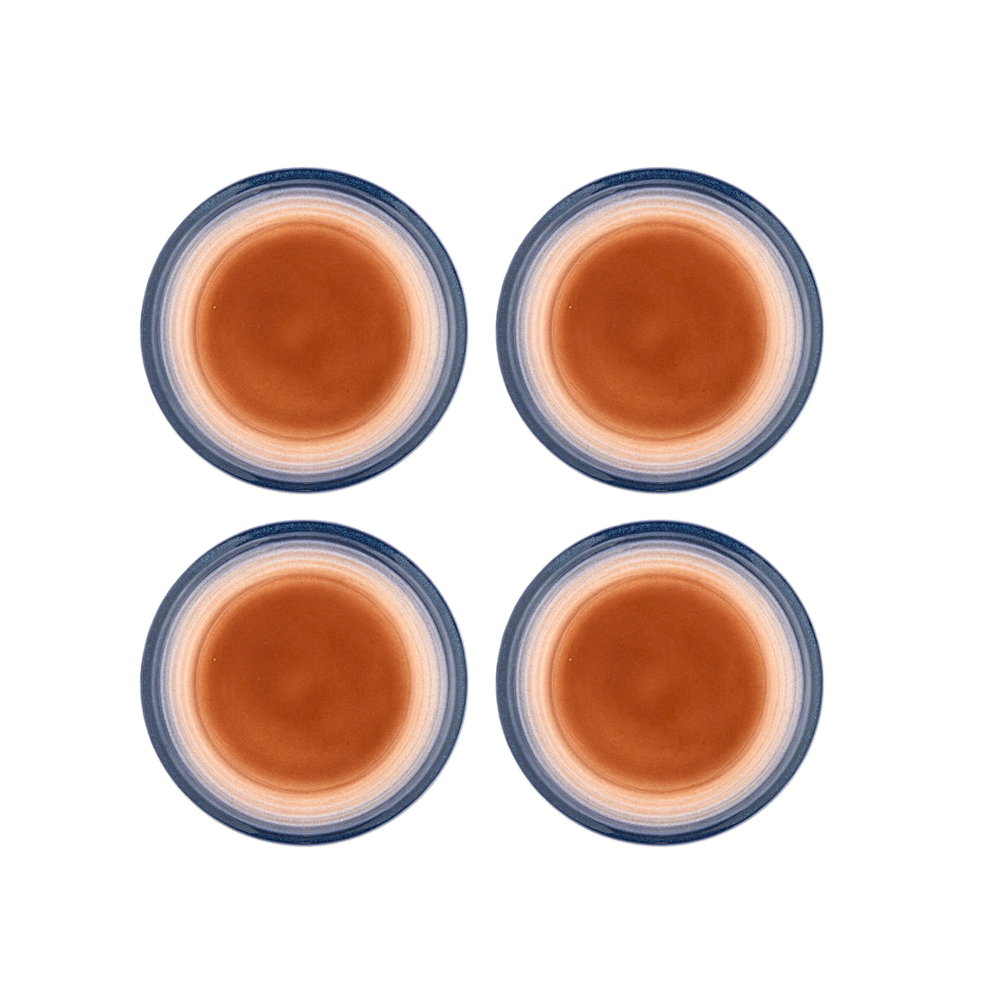 De Tatum borden van Bloomingville combineren een terracotta-kleurige kern met zachte overgangen naar rozetinten en diepblauw. Dankzij de glanzende afwerking en organische kleurverlopen krijgt elk bord een uniek karakter. Perfect voor een sfeervol gedekte tafel met een moderne twist.