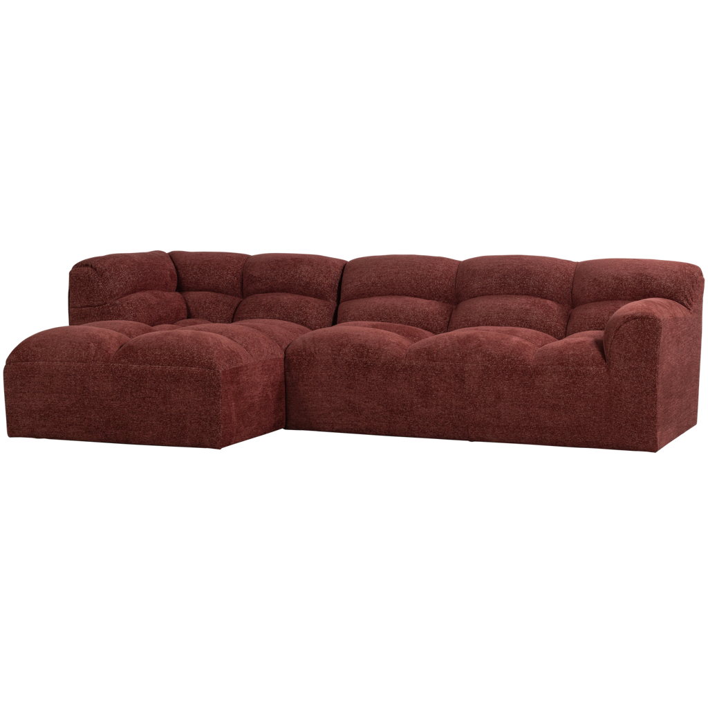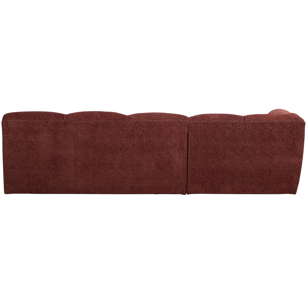 De Tibas chaise longue van WOOOD in wijnrood is een uitgesproken blikvanger voor wie durft. De diepe kleur in combinatie met het afgeronde, goed gevulde ontwerp zorgt voor een warme, luxe uitstraling. Door de hoek aan de linkerzijde is dit model ideaal voor plaatsing aan het uiteinde van een grotere bankopstelling of als losstaande loungeplek met karakter.