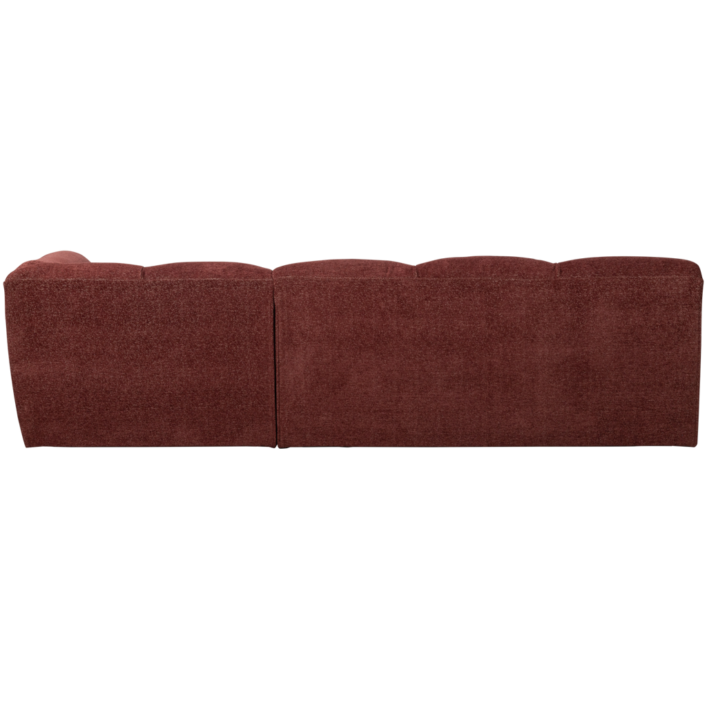 Met zijn diepe wijnrode tint en zachte lijnen is deze Tibas chaise longue van WOOOD een stijlvolle eyecatcher. De hoek rechts maakt hem perfect om je zithoek een luxe, uitnodigende uitstraling te geven. De royale zit en afgeronde armleuning zorgen voor optimaal comfort, terwijl de opvallende kleur je interieur karakter geeft.