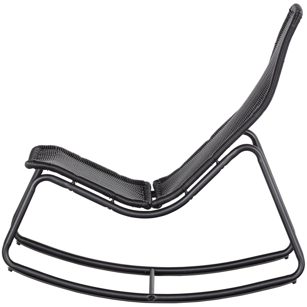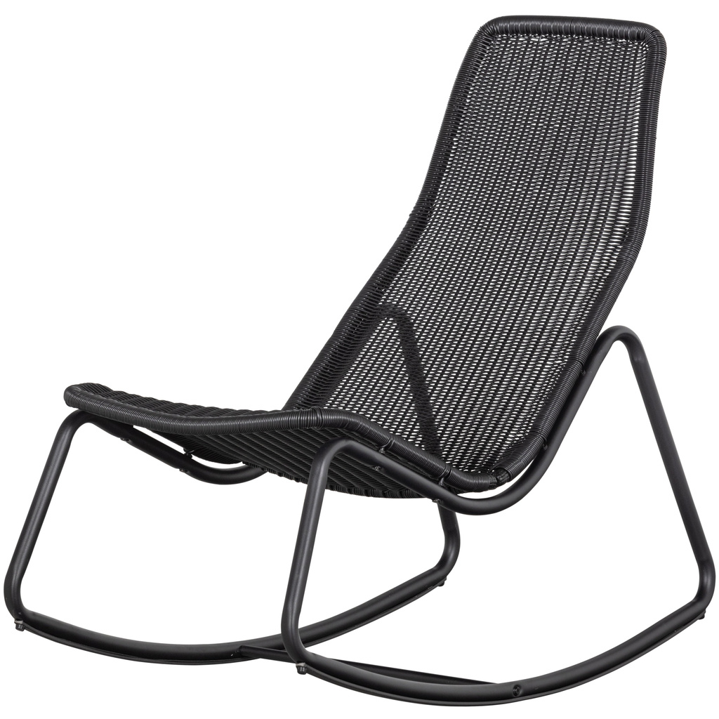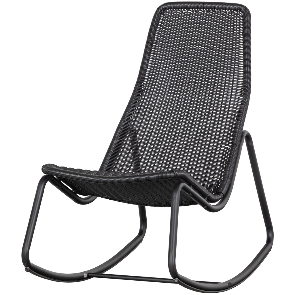 De Tom schommelstoel is een relaxte stoel voor binnen en buiten. Tom komt uit de collectie van het Nederlandse merk WOOOD en is gemaakt van zwart gecoat rattan. Deze coating maakt de Tom schommelstoel geschikt voor alle weersomstandigheden. Het zwart metalen frame heeft een matte uitstraling en een verstevigende tussenlat.