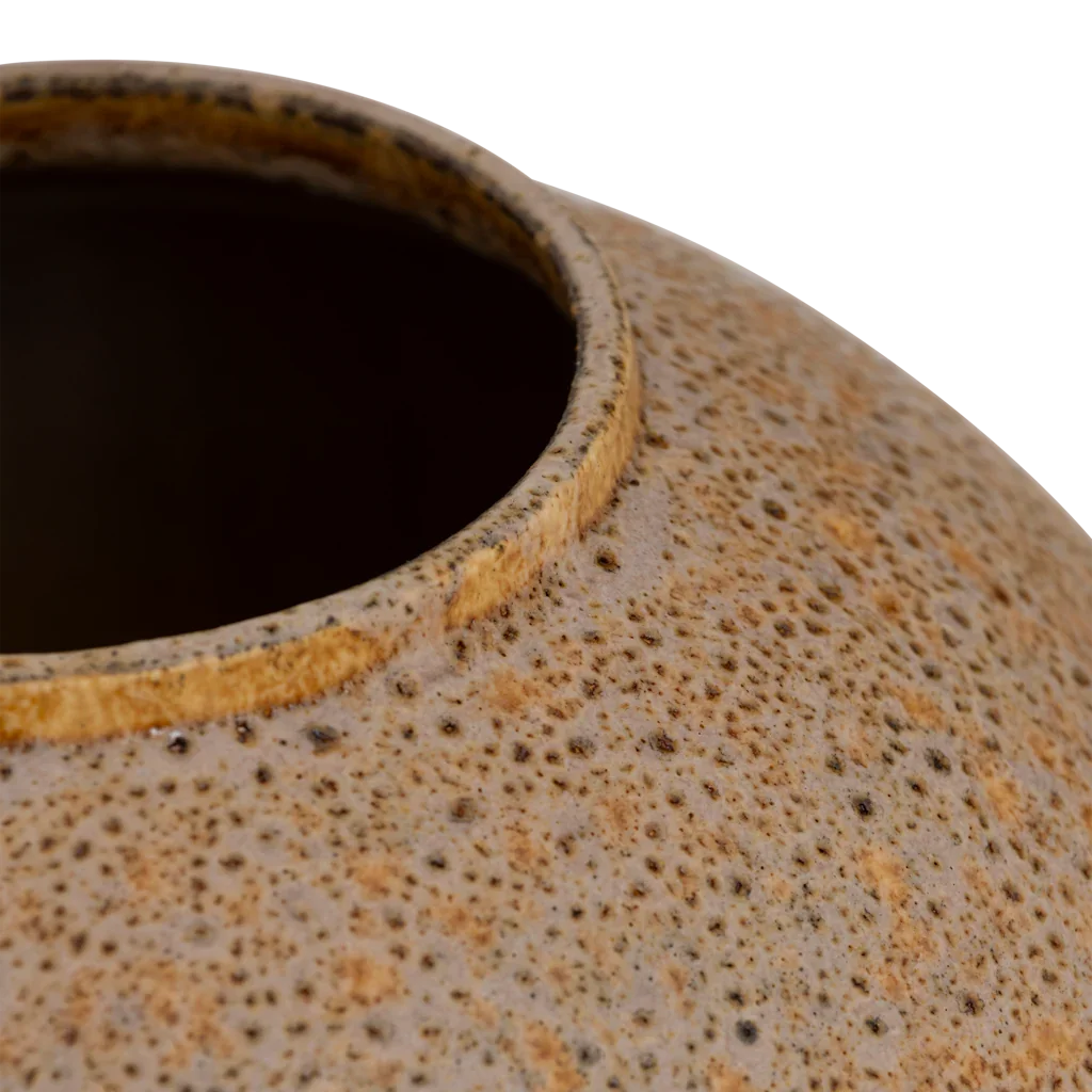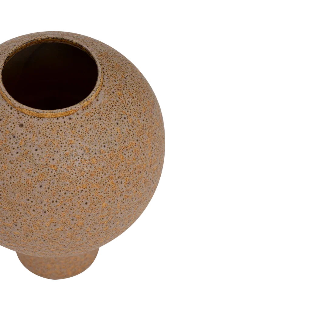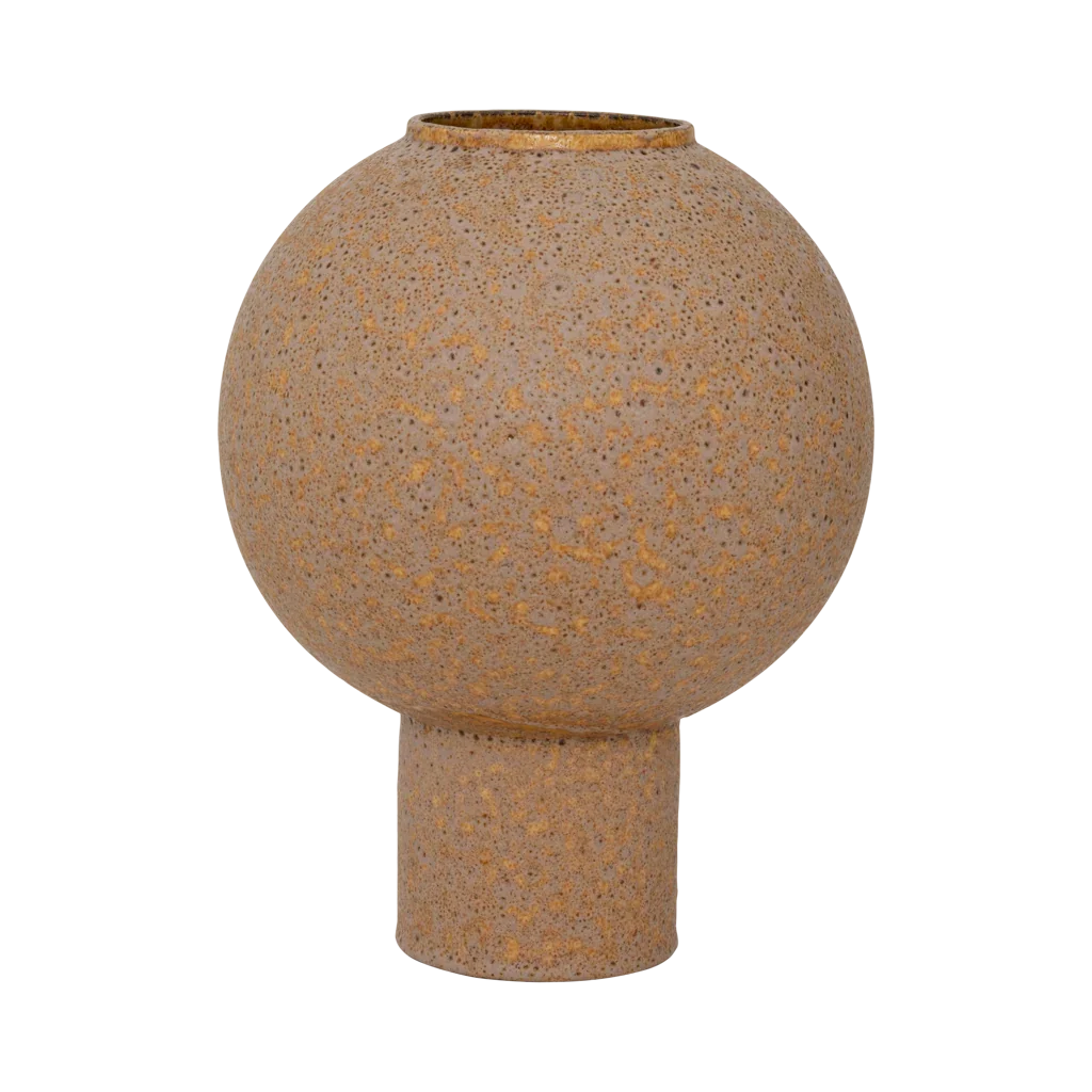 Een grote vaas van keramiek in de warme kleur starfish, met een uitgeproken reactieve glazuurl, gemaakt in Portugal. Krachtig en tijdloos tegelijk, met een uitstraling die statement en stijl toevoegt. Een eyecather die je interieur een eigen karakter geeft.