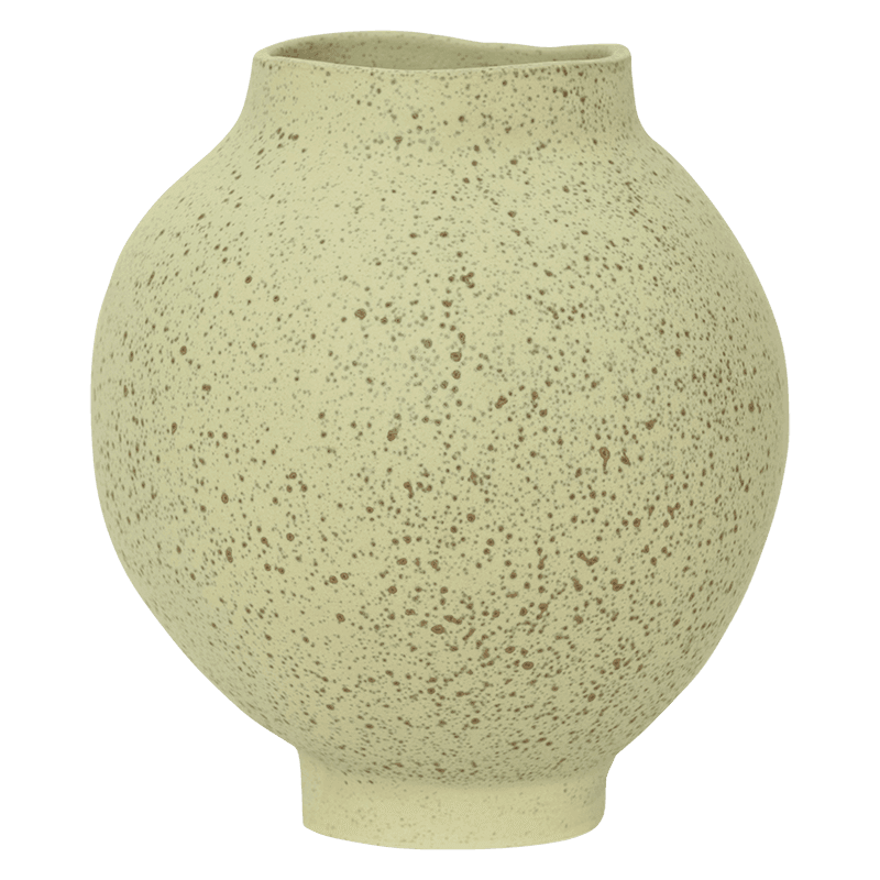 Gekenmerkt door het organische en het subtiele, is elke handgemaakte vaas uit de collectie van Urban Nature Culture uniek en valt hij op zichzelf op. Het heeft een ultramatte, droge afwerking met verfijnde spikkels in een baaigroene kleur. Handgemaakt in Portugal, waar de traditie van aardewerk van generatie op generatie wordt doorgegeven. Gemaakt met liefde en zorg voor onze planeet! Wij adviseren om de vaas voor gebruik te testen op 100% waterdichtheid.