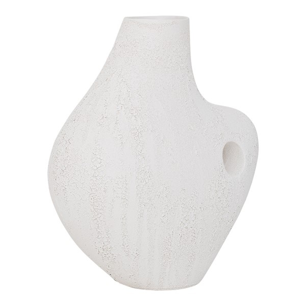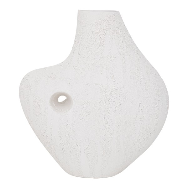 Drijvend op de golven van de zee, neemt een gevoel van kalmte de overhand, je thuis voelen in de wereld. Datzelfde gevoel krijgen we thuis, als een veilige haven om onze zintuigen te ontspannen en onze ogen te richten op onze dierbaarste dingen. Een ontsnapping aan de meedogenloze snelheid waarmee onze planeet draait, opladen voor de volgende duik. De Talvi-vaas van Urban Nature Culture, die een organische, asymmetrische vorm schommelt, met een onvolmaakte, vulkaanachtige afwerking in prachtig wit, vloeit als die golven. Met de hand gevormd in Portugal, het heeft een hoog gevoel van tactiliteit, je wilt het blijkbaar aanraken. Voeg bloemen toe of laat deze ambachtelijke schoonheid gewoon opvallen. Het maakt van je huis een thuis. Handgemaakt keramisch product. Wij adviseren om de vaas voor gebruik te testen op 100% waterdichtheid." Materiaal: Keramiek Eigenschappen van het product: - Vulkaanglazuur, elk stuk is uniek.