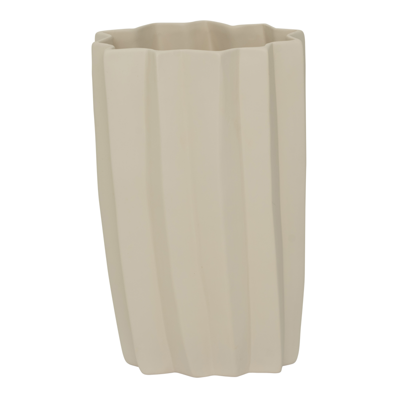 Eén blik op Urban Nature Culture's vaas Uli en je weet wat one-of-a-kind design betekent. Deze aardewerken vaas is handgemaakt in Portugal, heeft onregelmatige randen en vele andere handgemaakte details, zoals een matte, droge textuur in een verfijnde, zachte amandelmelkkleur. Een echte charmeur voor elke interieurstijl, die karakter en warmte toevoegt aan je woonkamer, keuken, hal of slaapkamer.We adviseren om de vaas voor gebruik te testen op 100% waterdichtheid.