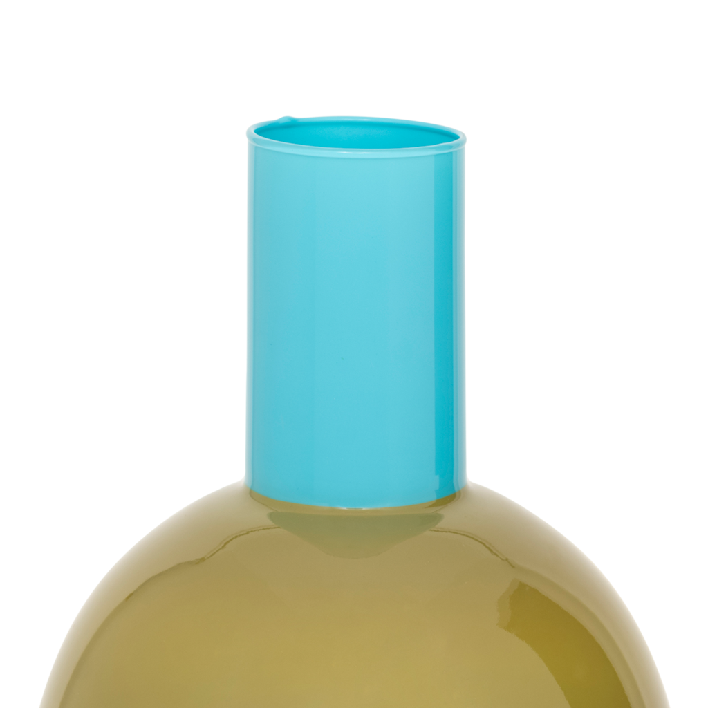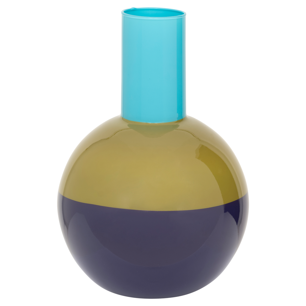 De Urban Nature Culture Vaas Lahja Rhodoniet is een expressief en artistiek statementstuk dat jouw interieur direct verrijkt. Deze grote bloemenvaas van niet-transparant gerecycled glas onderscheidt zich door zijn kleurrijke en gedurfde design. De opvallende kleurvlakken in blauw, olijf en paars zorgen voor een speels, maar tegelijkertijd luxe effect. Dankzij deze combinatie wordt de Lahja Rhodoniet een echte blikvanger in je woonruimte, zelfs zonder bloemen of takken.