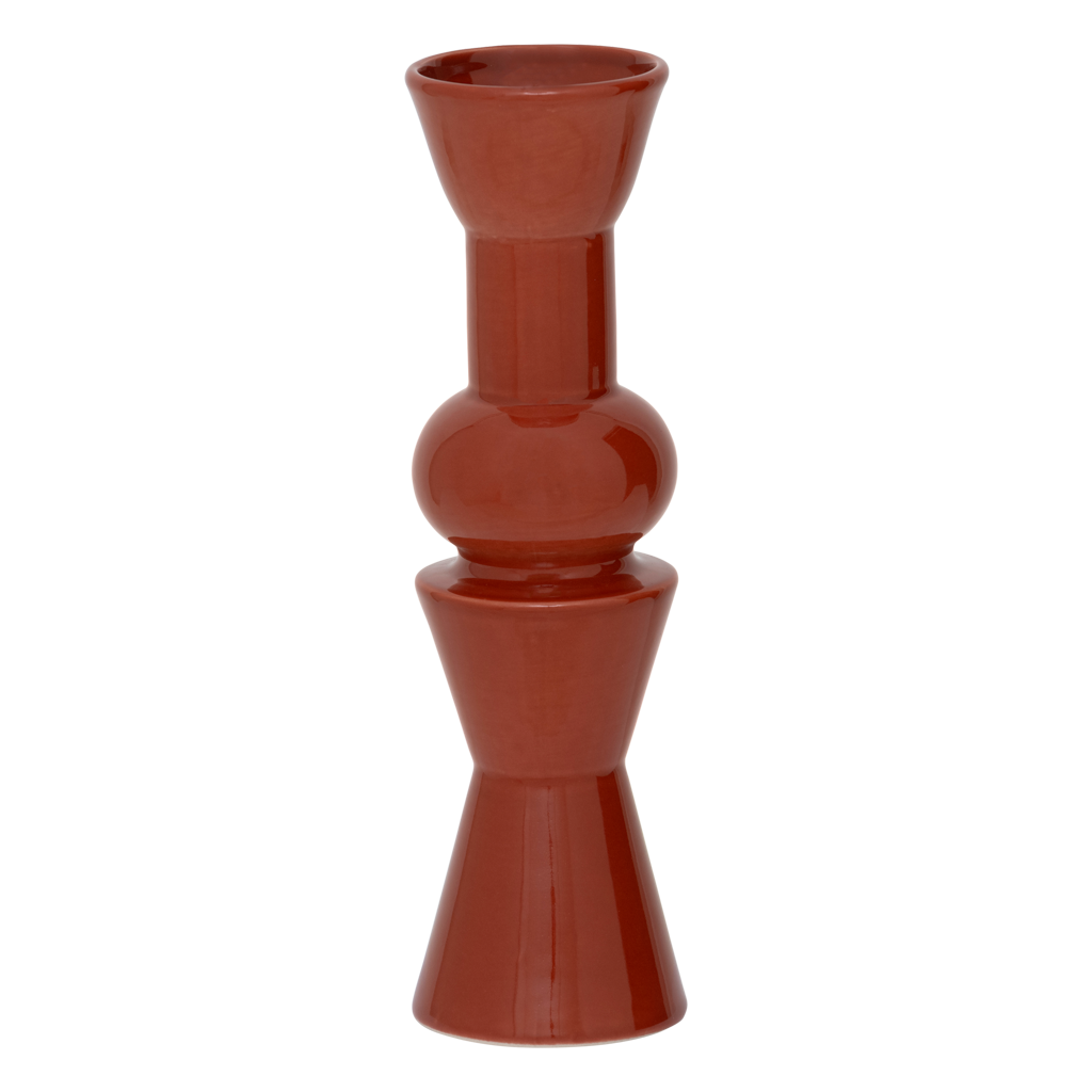 Geïnspireerd op totemvormen is deze ranke bloemenvaas in appelrood een krachtig statement in een bescheiden formaat. De glanzende finish benadrukt de abstracte lijnen van dit ontwerp. Prachtig met één expressieve bloem, of gewoon puur als woondecoratie.
