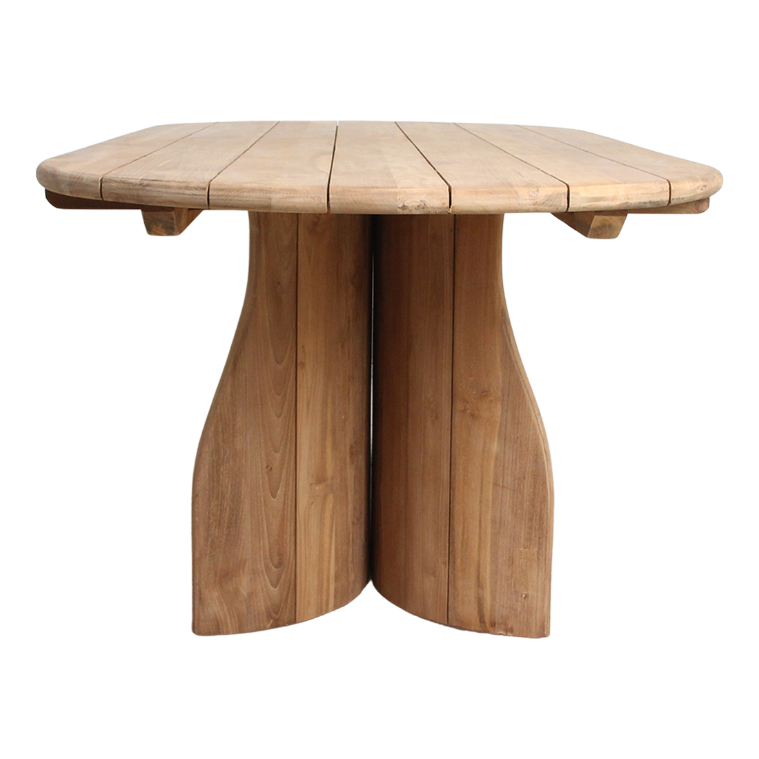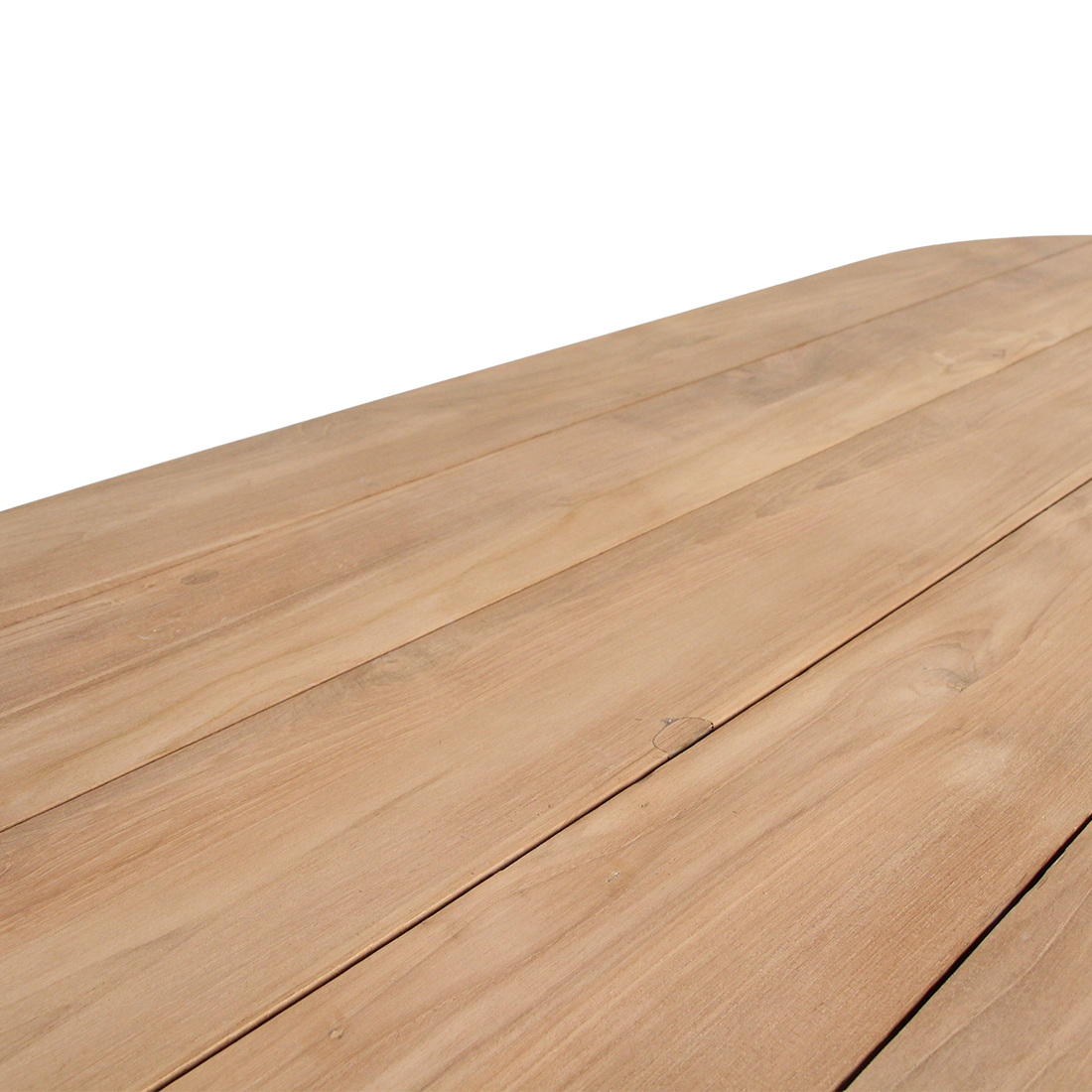 Het hout van deze tafel komt uit verantwoord beheerde bronnen en bestaat uit gerecyclede teakbalken en -delen. FSC-gerecycled hout betekent dat er geen nieuwe bomen illegaal zijn gekapt voor dit meubel en dat het hout afkomstig is uit bestaande houtstromen of oude constructies. Zo krijgt het hout een tweede leven, wordt afval hergebruikt en blijven natuurlijke bossen onaangetast. Het resultaat is een duurzame, milieuvriendelijke tafel die bijdraagt aan het behoud van bossen wereldwijd, zonder in te leveren op kwaliteit of stevigheid.