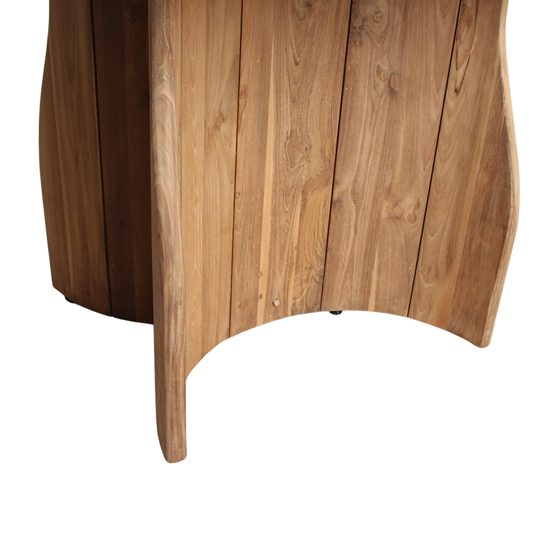 Teakhout is van nature goed bestand tegen buitenomstandigheden en behoeft weinig onderhoud. Laat je het onbehandeld, dan ontwikkelt het vanzelf een mooie, zilvergrijze patina. Wil je liever de warme, originele kleur behouden? Breng dan af en toe teakolie aan. Gebruik altijd onderzetters en maak gemorste vloeistoffen direct droog voor het mooiste resultaat.