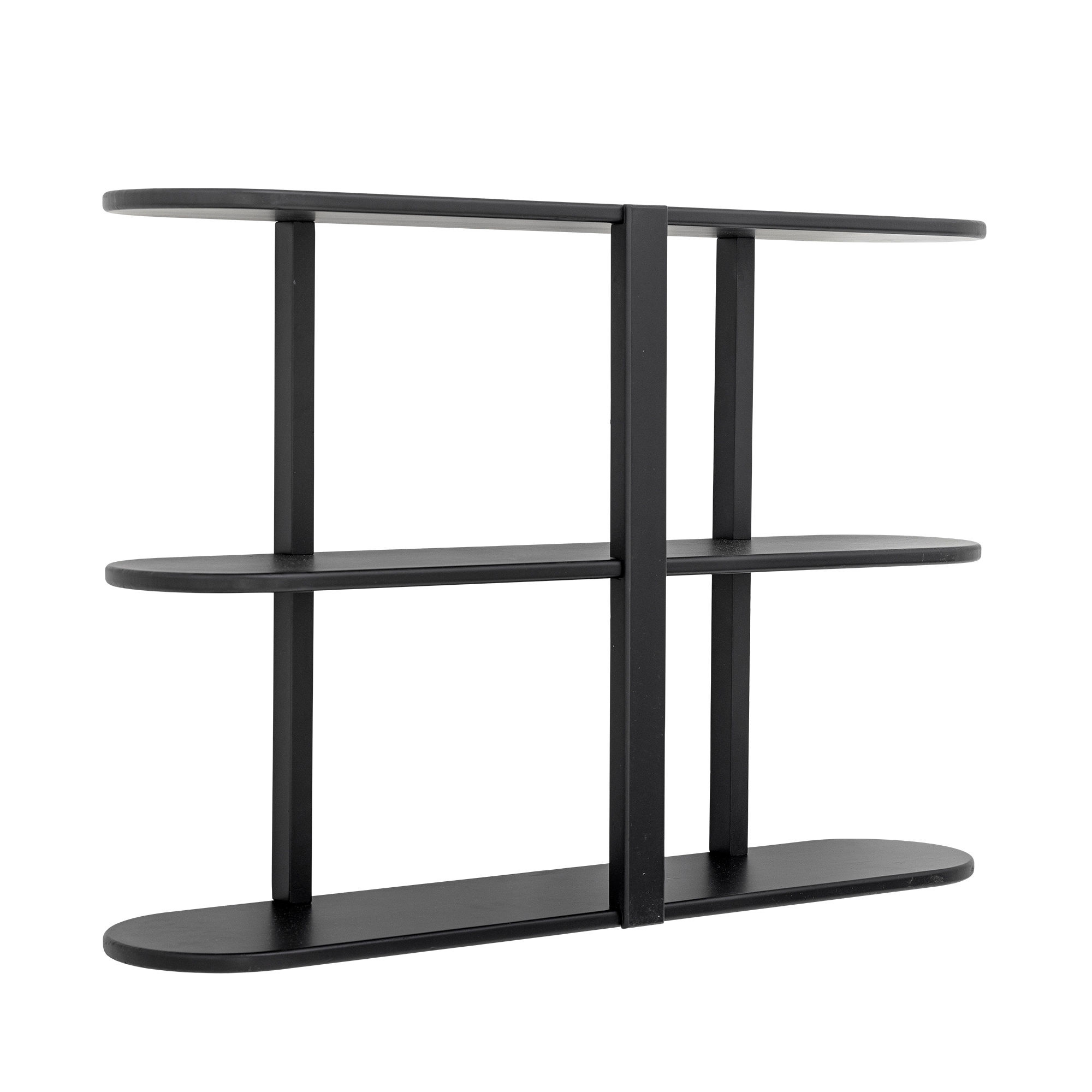 De Vicente plank van Bloomingville is een slimme oplossing voor opbergen en presenteren in stijl. Gemaakt van zwart gelakt MDF en voorzien van drie open vakken in een speels lijnenspel van horizontale en verticale elementen. Je kunt hem ophangen of gewoon neerzetten – ideaal in de woonkamer, keuken of hal.
