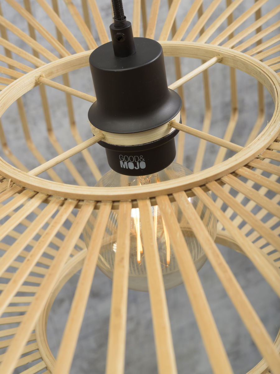 _x000D_Deze vloerlamp van Good&Mojo heeft door zijn bamboe kap een zachte en luchtige uitstraling. Zijn houten voet zorgt ervoor dat hij stevig blijft staan en door de natuurlijke kleur zal hij zich thuis voelen in elk interieur.