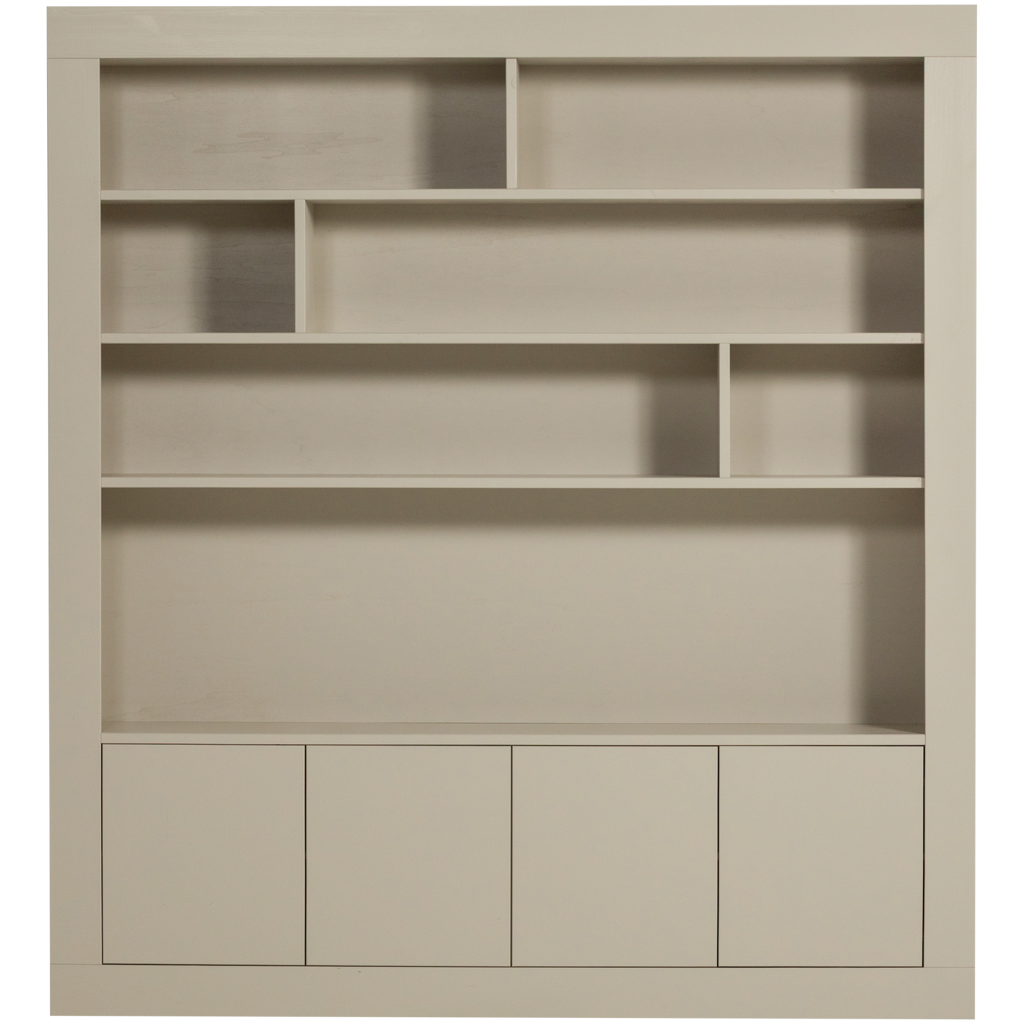 Combineer de open vakken met keramiek, linnen manden en kunstboeken. Wissel hoge en lage objecten af voor een speels maar evenwichtig beeld.