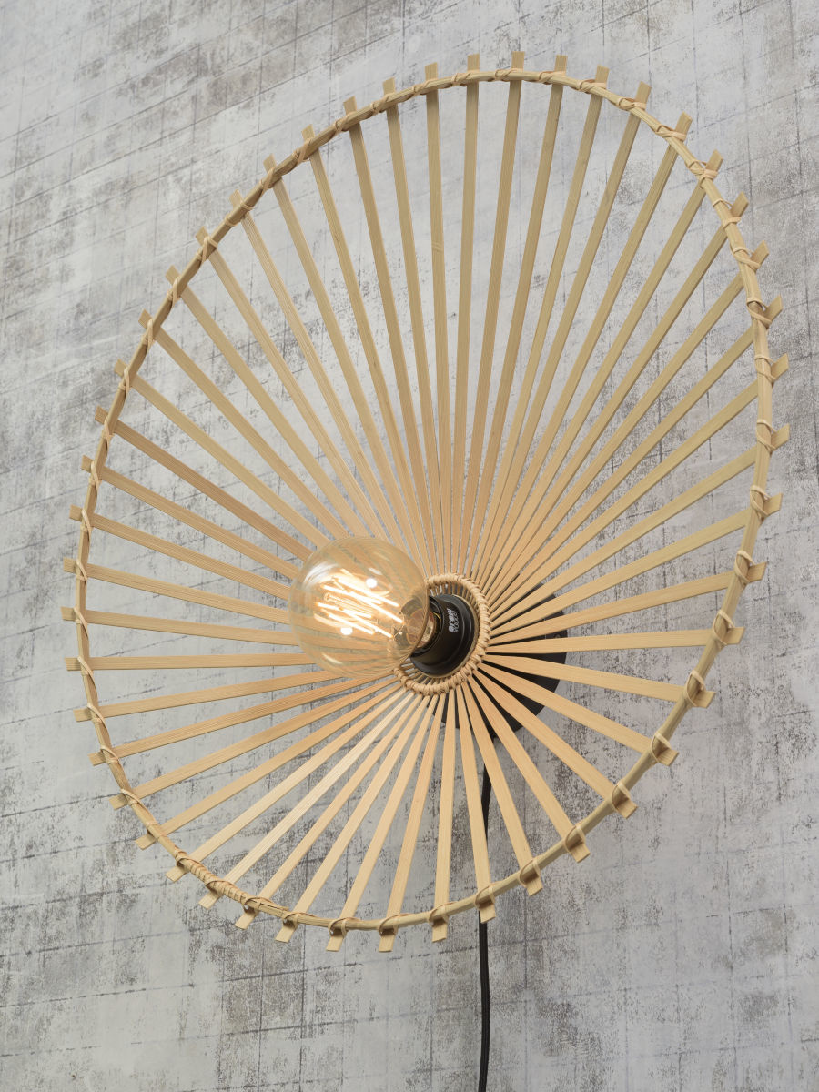 _x000D_Dit is nog eens een echte eyecatcher aan de muur en hij geeft nog licht ook! Door het bamboe materiaal past deze lamp in elk interieur.