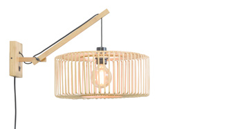 _x000D_Wandlamp Bromo bamboe nat./kap 40x18cm naturel, S - Fitting: E27 - Watt: 40 - Materiaal: Bamboe - Min-Max. hoogte: 35/43 cm - Schakelaar: Schakelaar op muurplaatje - De lamp is voorzien van zwarte textielsnoer. De lengte van de textielsnoer is 200 cm