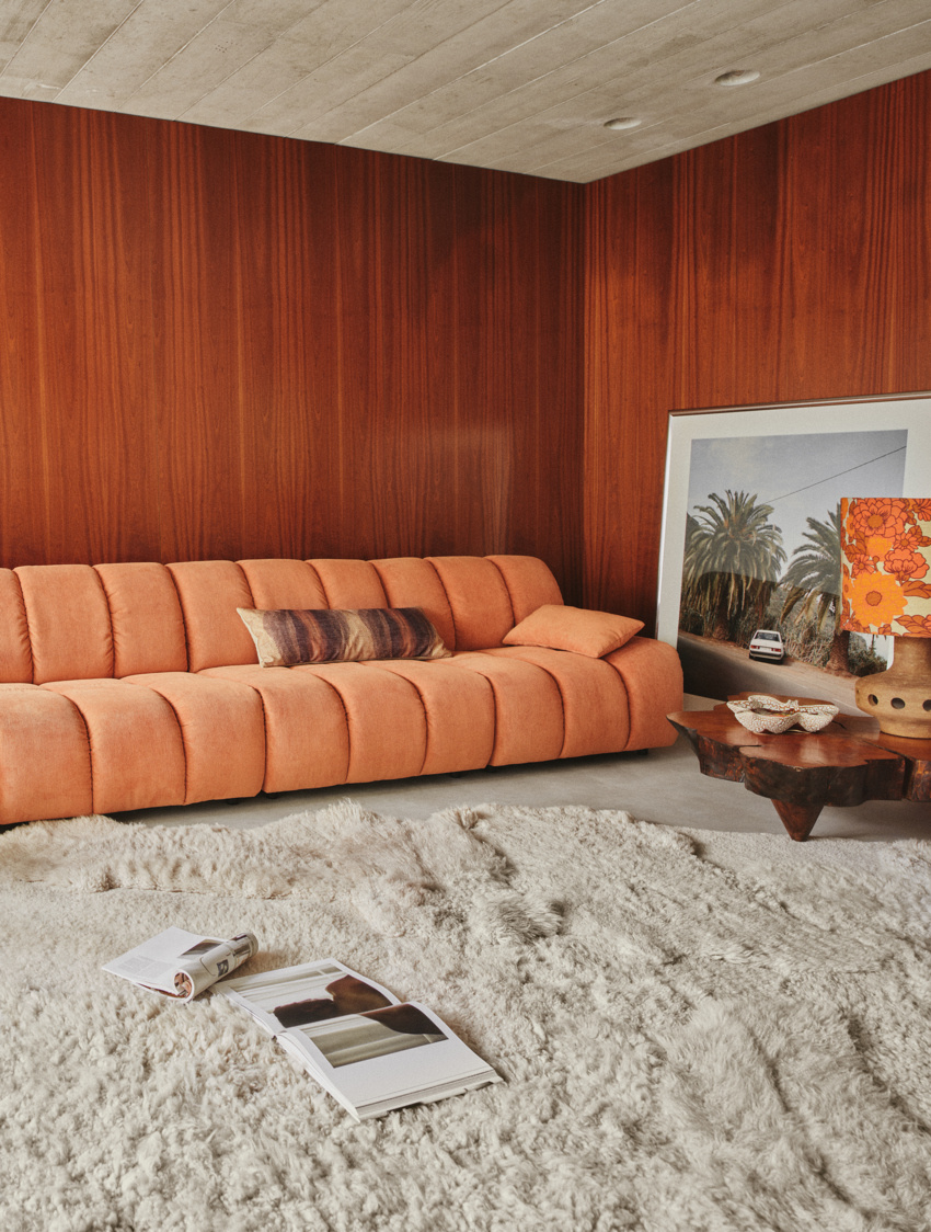 Geïnspireerd door de wens om af en toe te loungen, hebben we een bank gecreëerd die zowel multifunctioneel als eigentijds is. Jij hebt de leiding en kunt de bank samenstellen die jij wilt met onze negen Wave bankelementen. Hij heeft een iets actievere zit en kan gecombineerd worden met een uitnodigend boxspringelement. De algehele vorm van de bank is terug te voeren op het Hollywood van begin jaren zeventig en maakt dankzij de ronde rondingen van uw woonkamer een uitnodigende plek om samen te komen en te ontspannen. Maak je maar klaar, want de bank wordt gestoffeerd geleverd in een speciale stof die alleen voor de Wave bank is ontworpen. De jungleprint is voor degenen die verlangen naar rijkdom en extravagantie in hun leven.