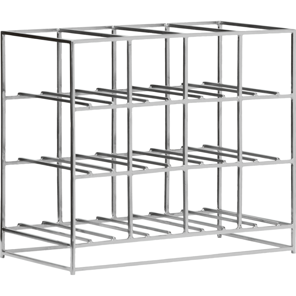 Het 12 wandrek is gemaakt van ijzer met een geborsteld zilveren finish die het strakke, geometrische frame een moderne, industriële uitstraling geeft. Het is de perfecte plek om je boeken, keramiek of decoratieve objecten tentoon te stellen en zo een persoonlijke blikvanger aan de muur te creëren.br>