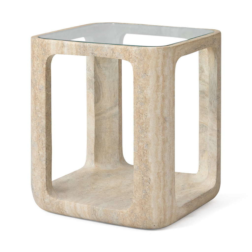 Geef je leefruimte een boost met de stijlvolle Yobeko Zijtafel Travertine Texture van Jesper Home.
